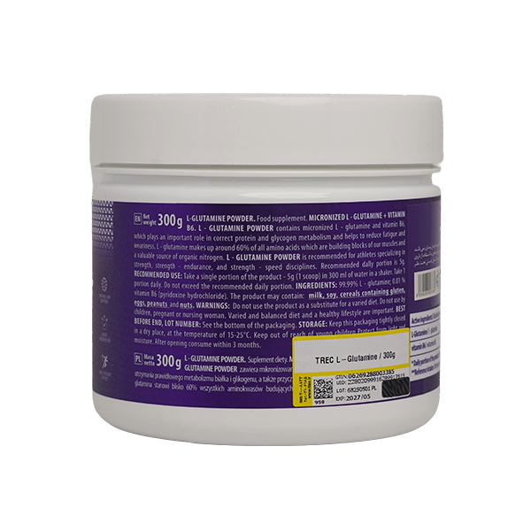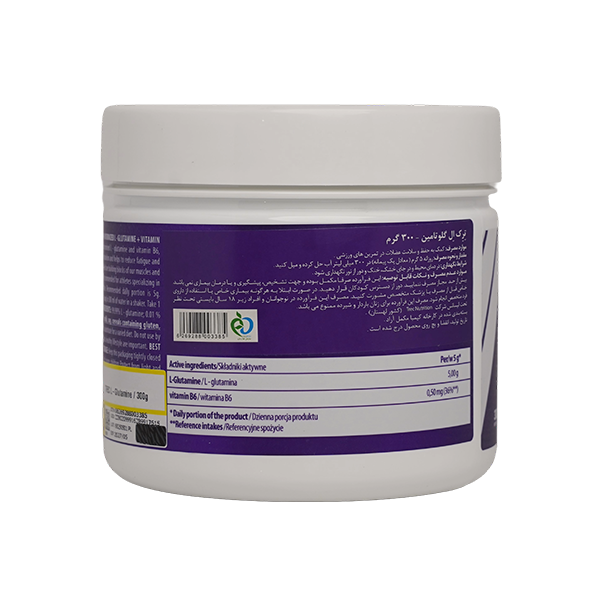 L-GLUTAMINE POWDER حاوی ال‌-گلوتامین میکرونایزد و ویتامین B6 است که نقش مهمی در متابولیسم صحیح پروتئین و گلیکوژن دارد و به کاهش خستگی و فرسودگی کمک می‌کند. ال‌گلوتامین حدود ۶۰٪ از کل آمینو اسیدهای سازنده عضلات را تشکیل می‌دهد و منبع ارزشمندی از نیتروژن ارگانیک به شمار می‌رود.